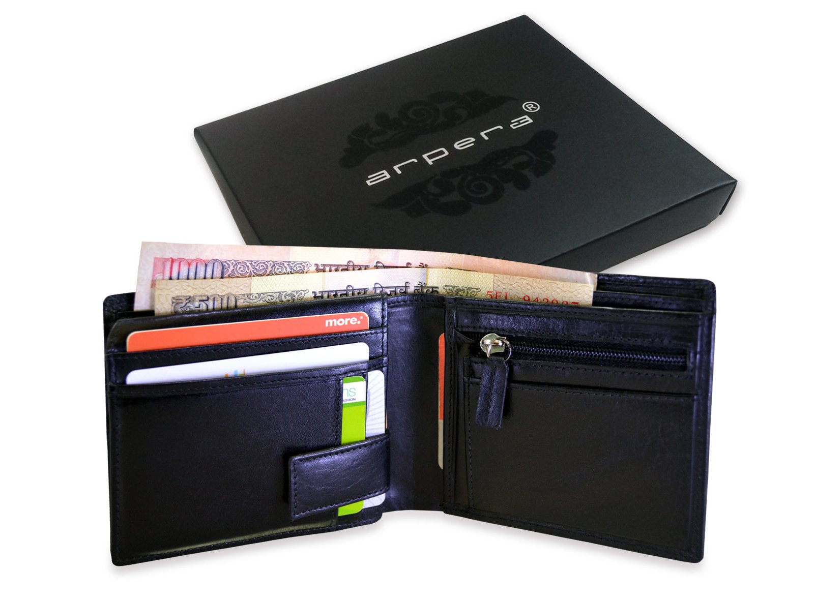 arpera Black Genuine Leather Mens Wallet with hidden Compartment C11428-1
